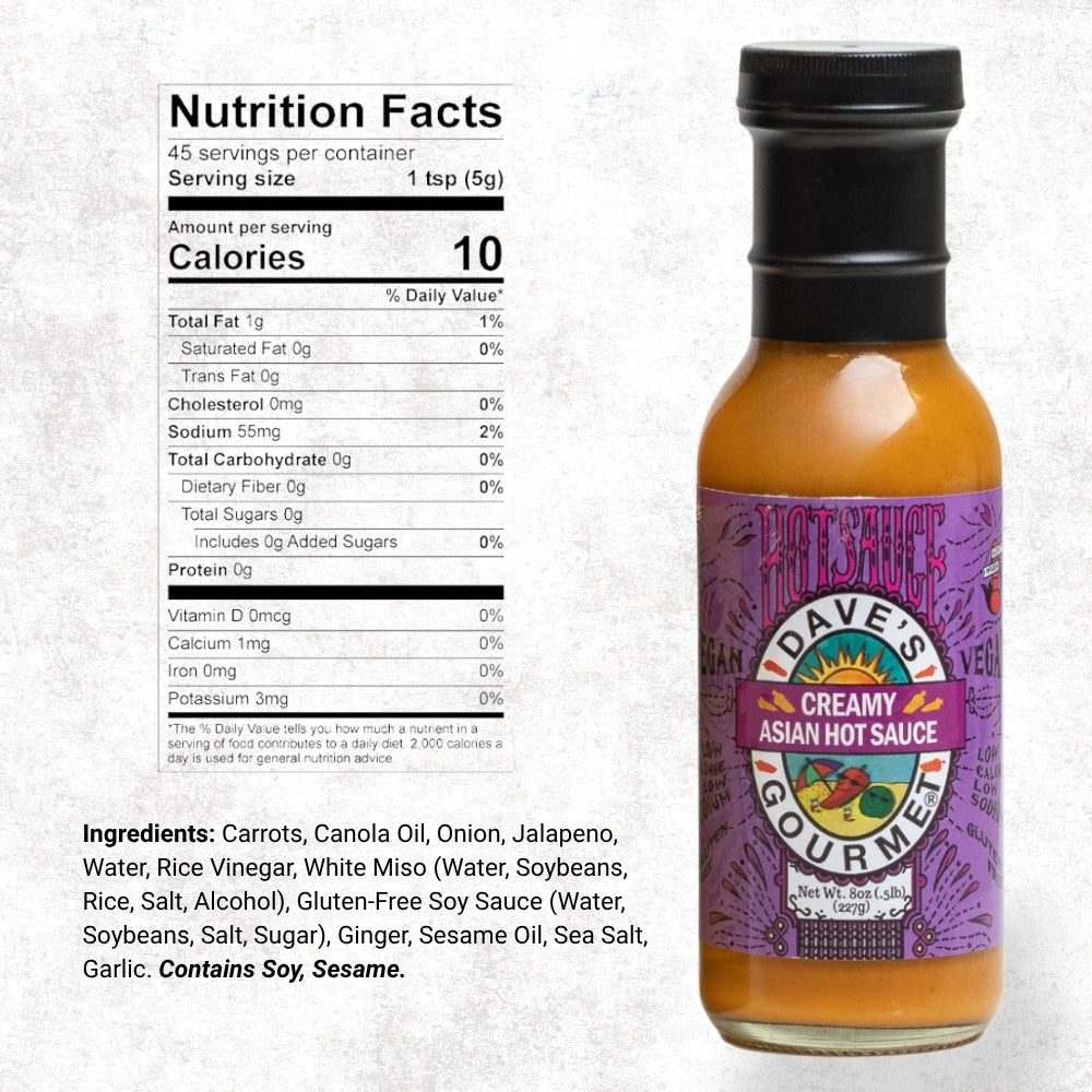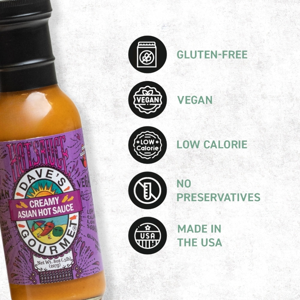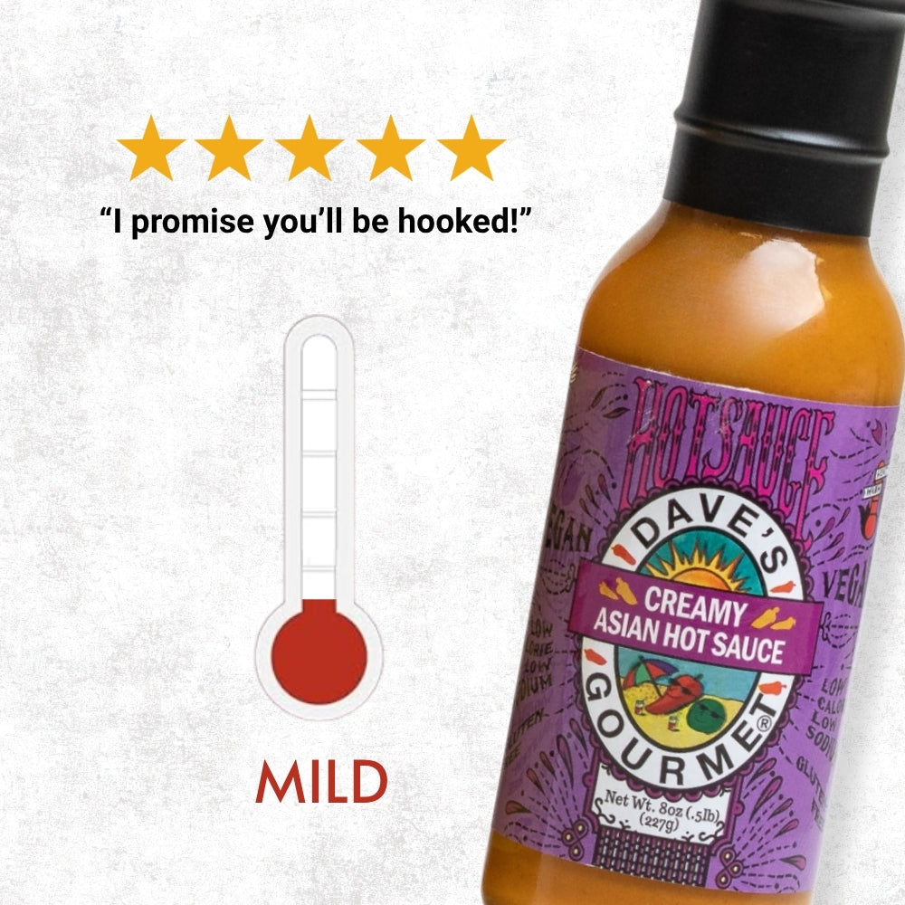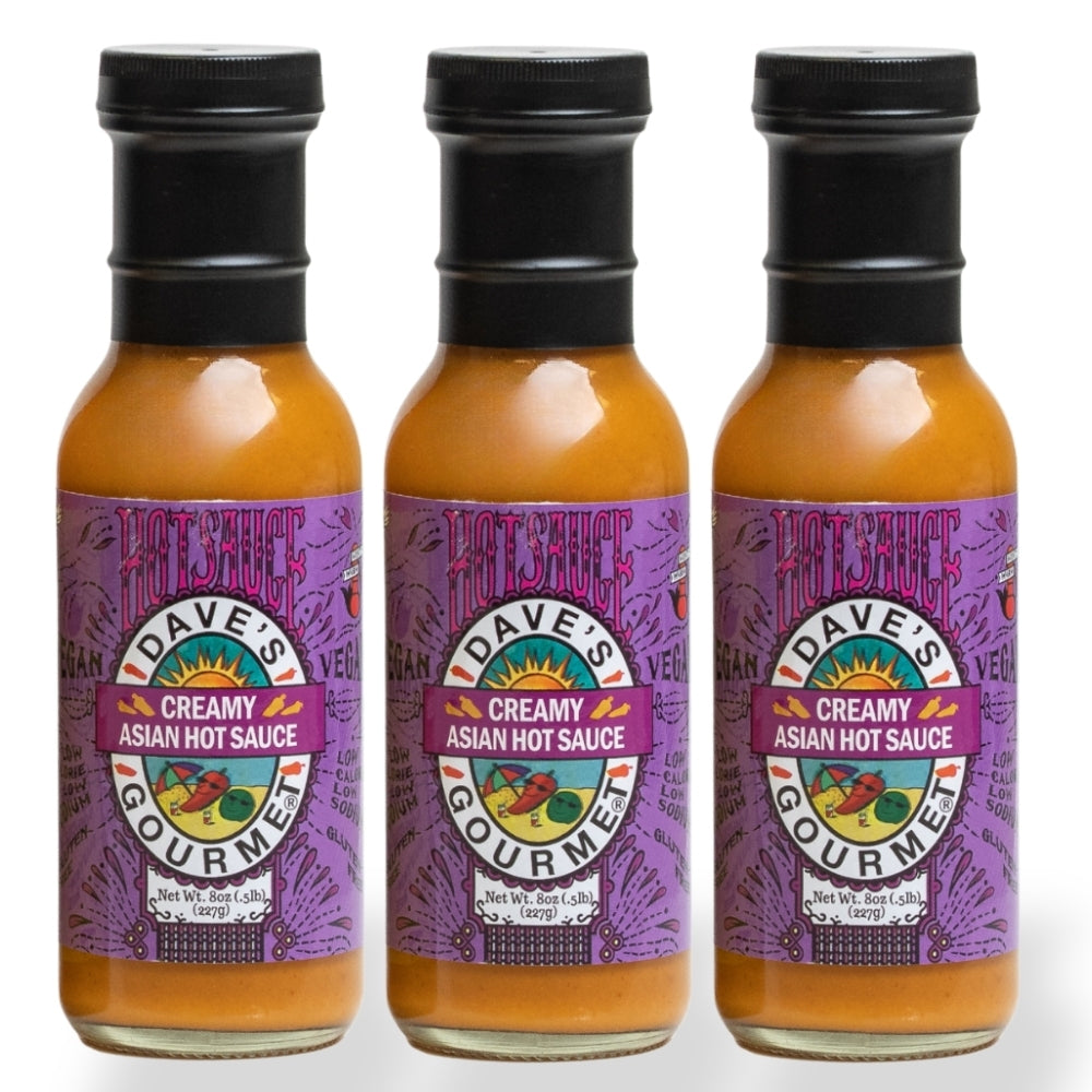 - Three (3) 8oz bottles of Dave’s Gourmet Creamy Asian Hot Sauce