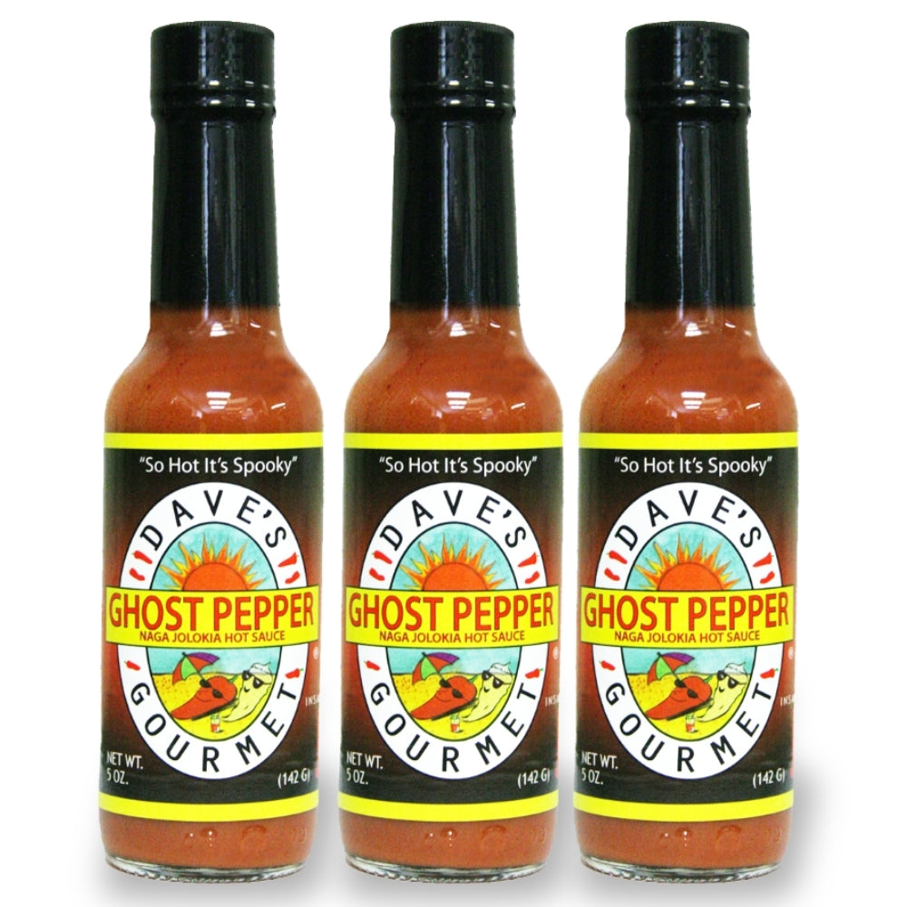 - Three (3) 5oz bottles of Dave’s Gourmet Ghost Pepper Naga Jolokia Hot Sauce